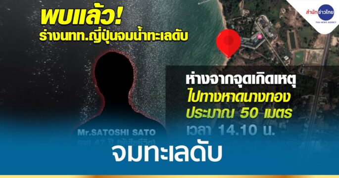พบศพแล้ว นักท่องเที่ยวชายชาวญี่ปุ่น ถูกคลื่นซัดจมหายไปในทะเลที่เขาหลัก จ.พังงา