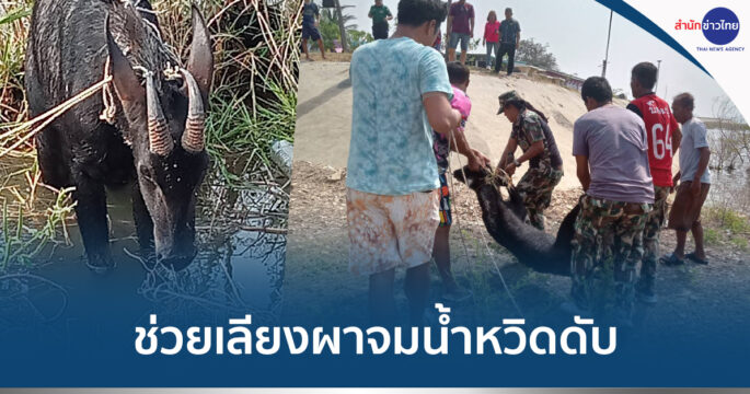 กรมอุทยานฯ ช่วยเลียงผาจมน้ำหวิดดับกลางเขื่อนกระเสียว