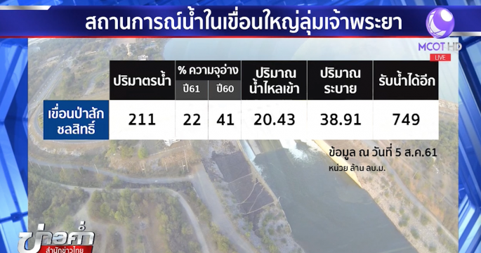 ผอ.โครงการส่งน้ำและบำรุงรักษาเขื่อนป่าสักชลสิทธิ์ ยอมรับปริมาณน้ำในเขื่อนปีนี้น่าเป็นห่วง ขณะนี้มีน้ำเหลืออยู่เพียงร้อยละ 21 ของความจุอ่าง