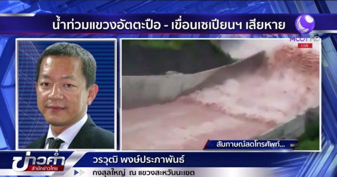 สถานการณ์ล่าสุดเหตุการณ์เขื่อนเซเปียน-เซน้ำน้อย ที่สาธารณรัฐประชาธิปไตยประชาชนลาวแตก พบว่ามีพื้นที่เสียหายเป็นวงกว้าง ขณะที่บริษัทสัญชาติไทยซึ่งร่วมทุนในโครงการเขื่อนดังกล่าวได้มอบเงิน 1,300 ล้านกีบ ให้ทางการลาว