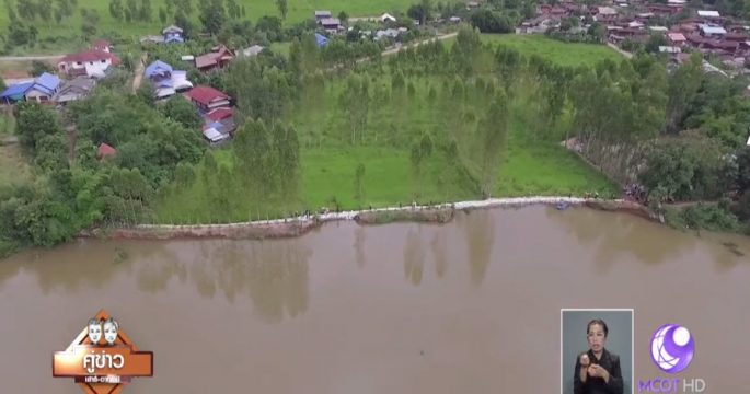 ชาวบ้านมหาสารคามเร่งกรอกกระสอบทราย หลังทราบข่าวเขื่อนอุบลรัตน์ปล่อยน้ำเพิ่มอีก 54 ล้านลูกบาศก์เมตร