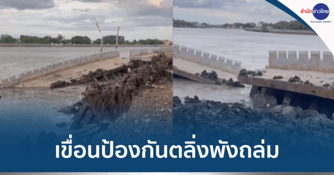 พังอีกแล้ว! แนวเขื่อนป้องกันตลิ่งหน้าวัดเชิงเลน จ.นนทบุรี พังถล่มลงแม่น้ำเจ้าพระยา ระยะทางกว่า 70 เมตร ขณะก่อสร้าง