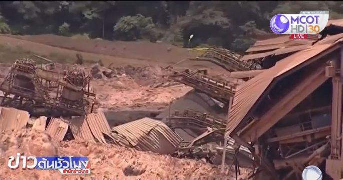 เกิดเหตุเขื่อนกักเก็บน้ำเสียจากการทำเหมืองในบราซิลแตก เป็นเหตุให้พื้นที่บางส่วนในเมืองบรูมาดินโญถูกน้ำและดินโคลนไหลเข้าท่วมเป็นบริเวณกว้าง