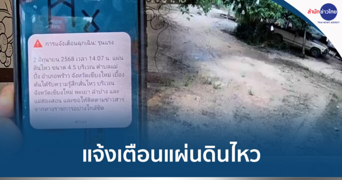 แผ่นดินไหวเขย่าแม่ปั๋ง ขนาด 4.5 ระบบ Cell Broadcast ส่งแจ้งเตือน