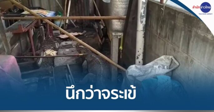 ชาวบ้านพบตัวเงินตัวทองขนาดใหญ่เดินป้วนเปี้ยนภายในหมู่บ้านจัดสรร แจ้งเจ้าหน้าที่กู้ภัยเข้าจับวิ่งหนีเข้าบ้านไปซุกกองไม้ คาดอากาศร้อนออกมาหาอาหารกิน