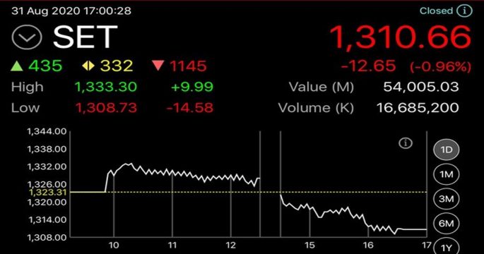 ตลาดหลักทรัพย์ ปิดวันนี้ที่ระดับ 1,310.66 จุด ลดลง 12.65 จุด (-0.96%) มูลค่าการซื้อขาย 54,005.03 ล้านบาท