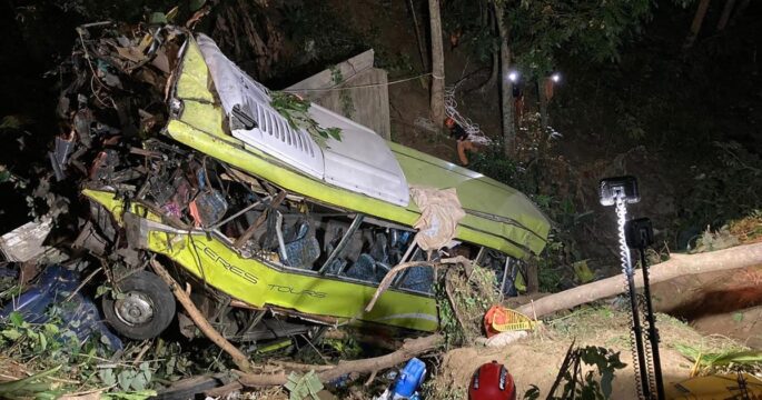 มะนิลา 6 ธ.ค.- เกิดเหตุรถโดยสารหลุด “โค้งมรณะ” และตกเขาทางตอนกลางของฟิลิปปินส์เมื่อวานนี้ มีผู้เสียชีวิต 17 คน เป็นชาวเคนยา 1 คน สำนักจัดการภัยพิบัติจังหวัดอันตีเกแจ้งว่า รถโดยสารประสบเหตุเมื่อบ่ายวันอังคารขณะเดินทางอยู่ในเทศบาลฮัมติก ถนนที่เป็นเกิดเหตุเป็นภูเขา รถจึงตกจากที่สูง เป็นเหตุให้มีผู้เสียชีวิตจำนวนมาก ผู้เห็นเหตุการณ์เผยว่า คนขับเสียการควบคุมรถ อาจเกิดจากระบบห้ามล้อหรือเบรคมีปัญหา ขณะนี้เจ้าหน้าที่เสร็จสิ้นการค้นหาและกู้ภัยแล้ว ขั้นตอนต่อไปจะเป็นการกู้ซากรถขึ้นมาจากหุบเขา ด้านผู้ว่าราชการจังหวัดอันตีเกเผยกับสถานีวิทยุท้องถิ่นว่า ผู้โดยสารส่วนใหญ่เป็นคนในจังหวัดนี้ และมีชาวเคนยารวมอยู่ด้วย 4 คน เธอขอเรียกจุดที่เกิดเหตุว่าเป็นโค้งมรณะ เนื่องจากมีรถโดยสารหลุดโค้งตกเขาเป็นครั้งที่ 2 แล้ว การที่มีผู้เสียชีวิตจำนวนมากทำให้ต้องยกเลิกการใช้ถนนสายนี้ และสร้างถนนสายใหม่ที่มีความปลอดภัยมากขึ้น และว่าหุบเขาที่รถโดยสารตกลงไปเป็นป่าทึบมีความลึกถึง 30 เมตร.-814.-สำนักข่าวไทย