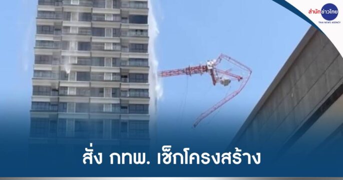 กทพ. ติดตามการรื้อย้ายซากเครนก่อสร้างบนอาคารสูง