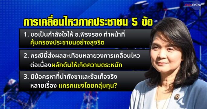 หลัง “ดร.พิรงรอง” กสทช. ถูกศาลชั้นต้นพิพากษาจำคุก กรณีออกหนังสือเตือนโฆษณาแทรกบนแพลตฟอร์ม True ID เป็นความผิดตาม ม.157 วันนี้ เครือข่ายภาคประชาชนจัดเวทีเสวนา พร้อมประกาศ 5 ข้อเคลื่อนไหวต่อกรณีนี้