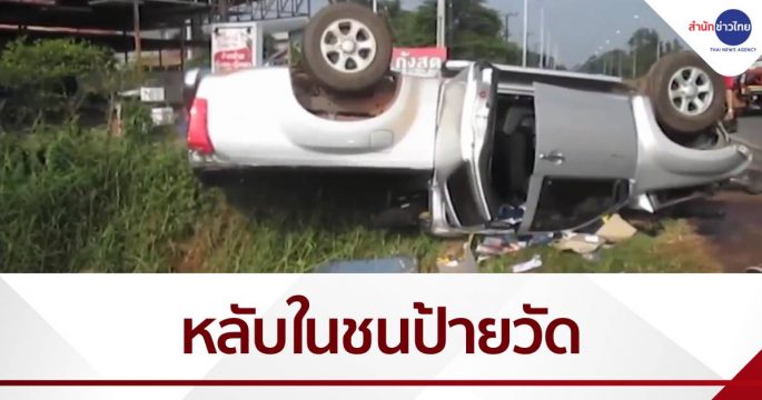 หนุ่มหลับในขับกระบะชนป้ายทางเข้าวัด เสียชีวิต