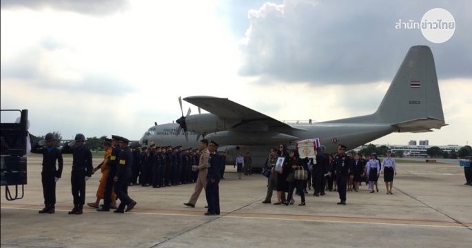 กองทัพอากาศ จัดพิธีรับศพนักบินที่เสียชีวิตขณะปฏิบัติหน้าที่ พร้อมปูนบำเหน็จพิเศษ 7 ขั้น ได้รับพระราชทานยศพลอากาศโท