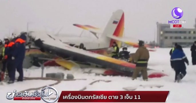 รัสเซีย 19 ธ.ค.-เครื่องบินโดยสารแบบอันโตนอฟ-2 ขนาดเครื่องยนต์เดียวของสายการบินท้องถิ่นในรัสเซีย ประสบอุบัติเหตุตกในเมืองนาร์ยาน-มาร์ ภูมิภาคยามาโล-เนเน็ทส์ ทางตอนเหนือของรัสเซีย ห่างจากกรุงมอสโกไปทางตะวันออกเฉียงเหนือ 1,500 กิโลเมตร ส่งผลให้มีผู้เสียชีวิต 3 คน บาดเจ็บอีก 11 คน ขณะที่เครื่องบินได้รับความเสียหายอย่างหนัก เนื่องจากนักบินพยายามนำเครื่องลงจอดฉุกเฉิน ไม่นานหลังจากบินขึ้นจากสนามบินเมืองนาร์ยาน-มาร์ มุ่งหน้าไปยังหมู่บ้านแถบขั้วโลกเหนือ ส่วนสาเหตุของเครื่องบินตกยังไม่ทราบแน่ชัด.-สำนักข่าวไทย
