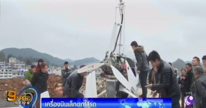 เครื่องบินเล็กไร้นักบินตกใส่รถจอดริมถนนในจีน