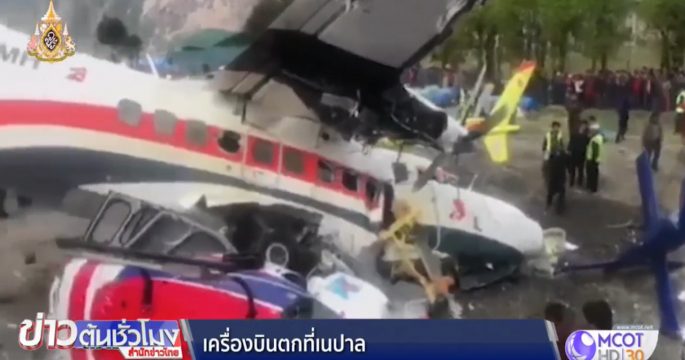 เครื่องบินเล็กของเนปาล ประสบอุบัติเหตุไถลไปชนเฮลิคอปเตอร์ที่จอดอยู่ ขณะกำลังขึ้นจากสนามบิน มีผู้เสียชีวิต 2 ราย บาดเจ็บ 5 คน
