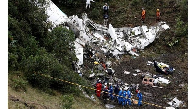 เกิดเหตุเครื่องบินเช่าเหมาลำตกในโคลอมเบีย พร้อมผู้โดยสารบนเครื่อง 81 คน รวมทั้งนักฟุตบอลทีมชาเปโคเอนเซ่ ของบราซิล ที่เดินทางไปเตะรอบสุดท้ายนัดแรก