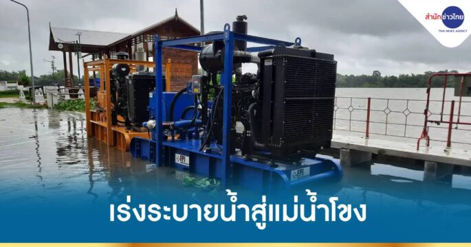 กรมชลฯ ระดมเครื่องผลักดันน้ำติดตั้งไว้หลายจุดเร่งระบายน้ำท่วมอุบลฯ ลงสู่แม่น้ำโขง หลังมวลน้ำมากไหลผ่านไปแล้ว