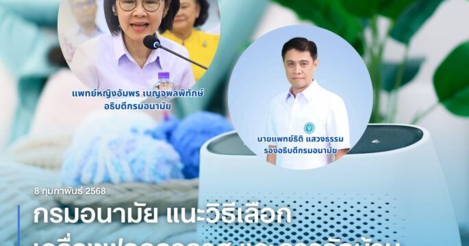 กรมอนามัย กระทรวงสาธารณสุข แนะหลักการเลือกเครื่องฟอกอากาศที่สามารถลดปริมาณฝุ่นละอองได้อย่างมีประสิทธิภาพ รวมถึงวิธีการจัดบ้านให้ปลอดภัยในช่วงที่สถานการณ์ค่าฝุ่นเพิ่มสูงขึ้นและมีความเสี่ยงต่อสุขภาพ