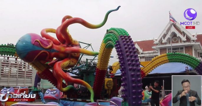 เจ้าหน้าที่เข้าตรวจสอบเครื่องเล่นหมึกยักษ์ภายในงานกาชาดสมุทรปราการ หลังเกิดเหตุพังถล่มจนมีผู้บาดเจ็บนับสิบคนเมื่อคืนที่ผ่านมา ล่าสุดพบว่าไม่มีใบอนุญาต เจ้าหน้าที่สั่งหยุดเครื่องเล่นทั้งหมดในงานแล้ว