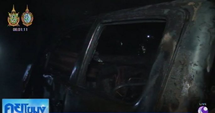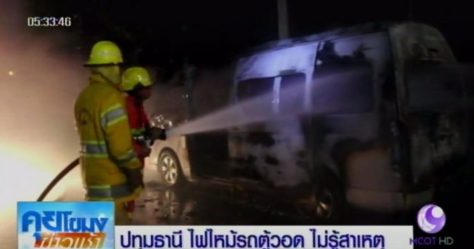 เจ้าของรถตู้จอดรถเปิดเครื่องเสียง ตั้งวงดื่มสุรากับเพื่อน เกิดไฟลุกไหม้ใต้เบาะรถ ดับไม่ทันลามวอดทั้งคัน