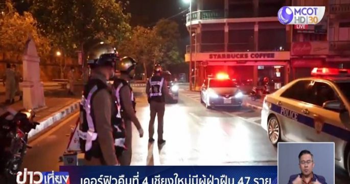 เคอร์ฟิววันที่ 4 จ.เชียงใหม่ มีผู้ฝ่าฝืน 47 คน พบสถิติยังสูงทุกวัน ทั้งขี่รถไปหาแฟน ออกมาซื้ออาหาร ขี่รถเล่น รวมทั้งจับกลุ่มดื่ม ส่วน จ.นครศรีธรรมราช ตำรวจจู่โจมจับแก๊งเสพยาเสพติด รวบได้ 3 คน