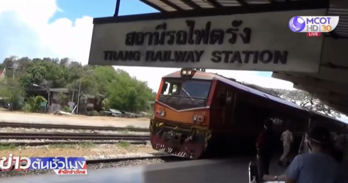 ภาพรถไฟขบวนสุดท้ายที่วิ่งระหว่างกรุงเทพฯ ปลายทางสถานีกันตัง จ.ตรัง หลังมีการประกาศหยุดวิ่งรับผู้โดยสารเพื่อให้สอดคล้องกับมาตรการเคอร์ฟิว
