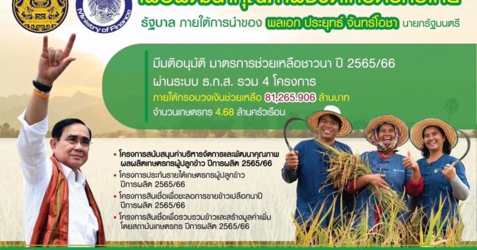 รัฐมอบ ธ.ก.ส. จ่ายเงินช่วยเหลือและยกระดับรายได้เกษตรกรผู้ปลูกข้าวผ่าน 4 โครงการ วงเงินรวมกว่า 8 หมื่นล้านบาท
