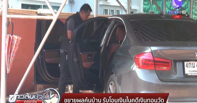 ตำรวจนำหมายศาลเข้าตรวจค้นบ้านพักในหมู่บ้านธรินภรณ์วิลล่า หลังพบเบาะแสเป็นบ้านของผู้รับโอนเงินจากพระชั้นผู้ใหญ่ คดีทุจริตเงินทอนวัดระยะ 3