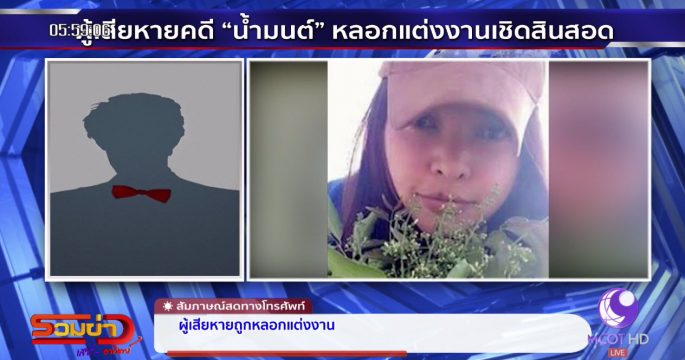 หนึ่งในผู้เสียหายตกเป็นเหยื่อ “น้ำมนต์” หลอกแต่งงานเชิดสินสอดหนี ให้สัมภาษณ์ในรายการ “รวมข่าวเสาร์-อาทิตย์” ว่ารู้จักกันทางเฟซบุ๊ก เริ่มตีสนิทและนัดพบกัน ฝ่ายหญิงพูดจาดี โน้มน้าวเก่ง พาไปดูสวนผลไม้