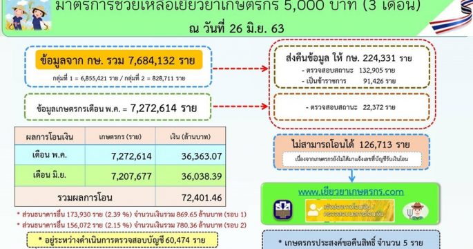 ธ.ก.ส.แจ้งปลัดกระทรวงเกษตรฯ พร้อมจ่ายเงินเยียวยางวด 2 ให้เกษตรกรกว่า 7.1 ล้านราย ตั้งแต่ 15 มิ.ย.นี้