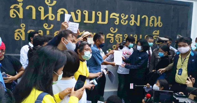 ผู้ชุมนุมหน้ากระทรวงการคลังยื่นข้อเรียกร้องให้รัฐบาลจ่ายเงินเยียวยา 5 พันบาทให้ประชาชนทุกคนที่มีอายุ 20 ปี