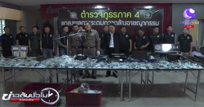 ผู้บัญชาการตำรวจภูธรภาค 4 สอบปากคำเจ้าของร้านทองแห่งหนึ่งใน อ.กุฉินารายณ์ จ.กาฬสินธุ์ พร้อมของกลางปืนพกสั้น 237 กระบอก ปืนลูกซองยาว 5 กระบอก และปืนลูกกรดขนาด .22 อีก 1 กระบอก หลังสืบสวนว่าจำนำปืน
