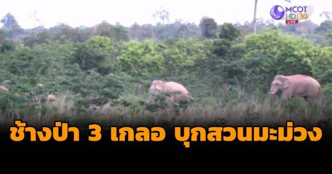 ชาวบ้านในพื้นที่บ้านสันกำแพง จ.นครราชสีมา หวาดกลัว หลังจากมีช้างป่าลงมาหาผลไม้ในสวนของชาวบ้านกิน กลุ่มอนุรักษ์สัตว์ป่าวังหมีเข้าช่วยเหลือ ผลักดันช้างป่าทั้ง 3 ตัว กลับเข้าป่าแล้ว