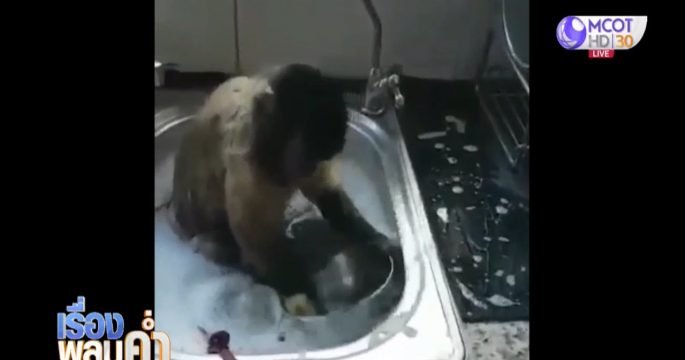 เจ้าจ๋อเป็นแม่บ้าน รับล้างจาน