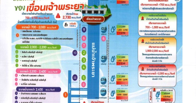 แจ้งเตือน 7 จังหวัดลุ่มเจ้าพระยา อุทัยธานี ชัยนาท สิงห์บุรี อ่างทอง สุพรรณบุรี อยุธยา และลพบุรี เฝ้าระวังสถานการณ์น้ำ เนื่องจากปริมาณน้ำไหลผ่านเขื่อนเจ้าพระยามีแนวโน้มสูงขึ้น