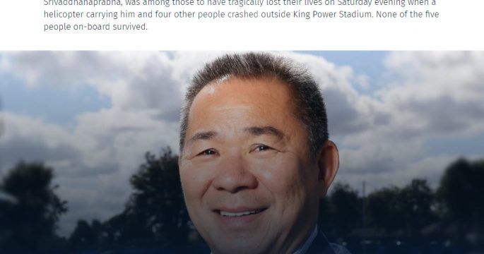 หลังมีคำยืนยันอย่างเป็นทางการถึงการเสียเสียชีวิตของประธานสโมสรเลสเตอร์ ซิตี้ จากอุบัติเหตุเฮลิคอปเตอร์ตก ใกล้คิง เพาเวอร์ สเตเดียม สร้างความสะเทือนใจกับครอบครัว ทีมฟุตบอลเลสเตอร์ และแฟนบอลทั่วโลก