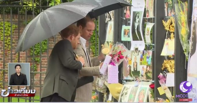 ก่อนถึงวันครบรอบ 20 ปี การสิ้นพระชนม์ของเจ้าหญิงไดอานา เจ้าชายวิลเลียมและเจ้าชายแฮร์รี พระโอรส เสด็จไปยังสวนดอกไม้ภายในบริเวณพระราชวังเคนซิงตัน เพื่อรำลึกถึงพระมารดา