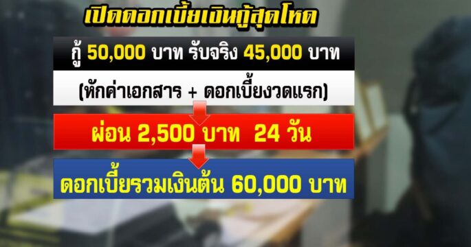 อดีตข้าราชการเจอมรสุมชีวิตต้องกู้เงินนอกระบบมาหมุนใช้จ่าย แต่หาเงินมาผ่อนดอกโหดไม่ทัน ต่อรองไม่เป็นผล ถูกเจ้าหนี้ขู่ทำร้ายและจะโฟสต์ประจาน โร่แจ้งตำรวจช่วย
