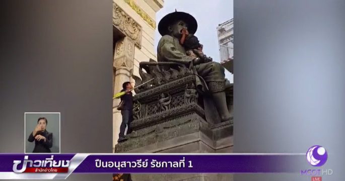 ชายหนุ่มมีอาการเมาสุราพูดจาวกวนปีน พระบรมราชานุสาวรีย์ สมเด็จพระพุทธยอดฟ้าจุฬาโลก โดยเจ้าหน้าที่ต้องใช้เวลาเกือบ 3 ชั่วโมง เกลี้ยกล่อมสุดท้ายอ่อนแรงยอมลงกระเช้า