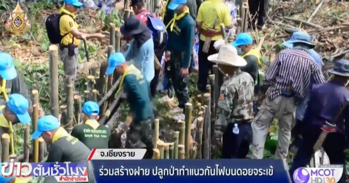 เจ้าหน้าที่ อาสาสมัครและชาวบ้านกว่า 1,000 คน ร่วมกัน สร้างฝายชะลอน้ำที่ไหลจากดอยจระเข้ เพื่อกักเก็บน้ำ แก้ปัญหาขาดแคลนน้ำในช่วงหน้าแล้ง พร้อมทำแนวกันไฟ