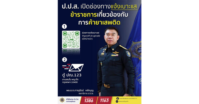 รักษาการ เลขา ป.ป.ส. ลั่นเจ้าหน้าที่รัฐเกี่ยวข้องกับยาเสพติดต้องถูกจัดการ พร้อมเปิดช่องทาง LINE OA แจ้งเบาะแสเจ้าหน้าที่รัฐค้ายาเสพติด