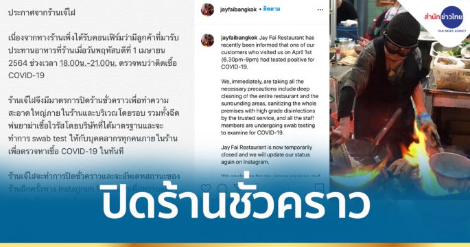 “เจ๊ไฝ” ประกาศปิดร้านชั่วคราว พบลูกค้าติดโควิดมารับประทานอาหารที่ร้าน เตรียมทำความสะอาดใหญ่ ฉีดพ่นยาฆ่าเชื้อ ตามมาตรการสาธารณสุข