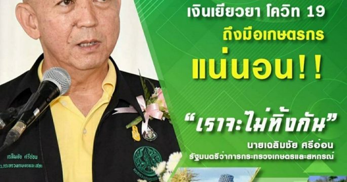 รมว.เกษตรฯ ระบุนายกรัฐมนตรีย้ำให้จ่ายเงินช่วยเหลือเยียวยาเกษตรกรอย่างทั่วถึง แจงมาตรการช่วยเหลือ 1 ทะเบียนเกษตรกรได้รับ 1 สิทธิ์