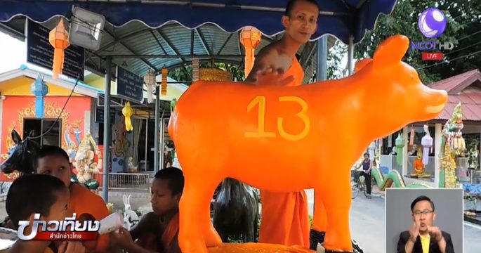 วัดป่าสักหางเวียง อ.เชียงแสน หล่อเทียนพรรษาเป็นรูปจ่าแซม และหมูป่าตัวใหญ่สวมรองเท้ามนุษย์กบ มีตัวเลข 13 ที่ลำตัวข้างซ้ายหมายถึงโค้ชและนักเตะเยาวชนทีมหมูป่าอะคาเดมี