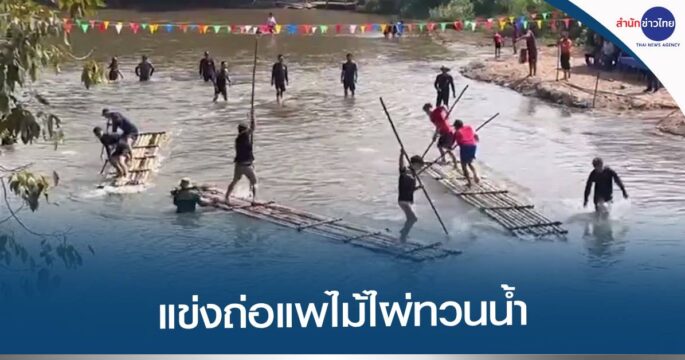 สนุกสนาน! ชาวบ้านและหน่วยงานภาครัฐ แข่งถ่อแพไม้ไผ่ทวนน้ำ ในลำน้ำแม่แจ่ม จ.เชียงใหม่ สร้างความรักความสามัคคีในชุมชน