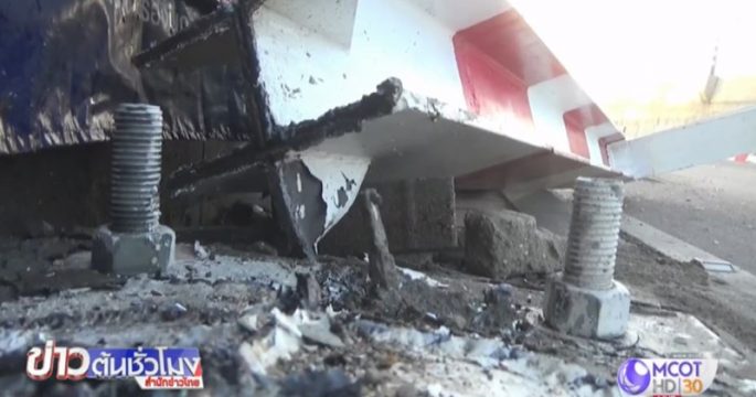 กระบะซิ่งชนคานลอดใต้สะพานกลางเมืองเชียงใหม่ กระเทียมแห้งตกเกลื่อนถนน ก่อนขับรถหนีไป เจ้าหน้าที่เตรียมแจ้งความเรียกค่าเสียหาย