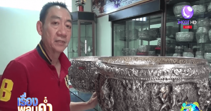 ช่างเครื่องเงิน บ้านวัวลาย จ.เชียงใหม่ ทำขันเงินยักษ์ กว้าง 27 นิ้ว สูง 14 นิ้ว ใช้เงินบริสุทธิ์มากถึง 511 บาท ราคาเกือบ 2 ล้านบาท ปัจจุบันน่าจะเป็นขันเงินใบใหญ่ที่สุดของหมู่บ้านวัวลาย