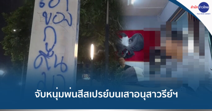 จับหนุ่มพ่นสีสเปรย์บนเสาอนุสาวรีย์สามกษัตริย์ กลางเมืองเชียงใหม่