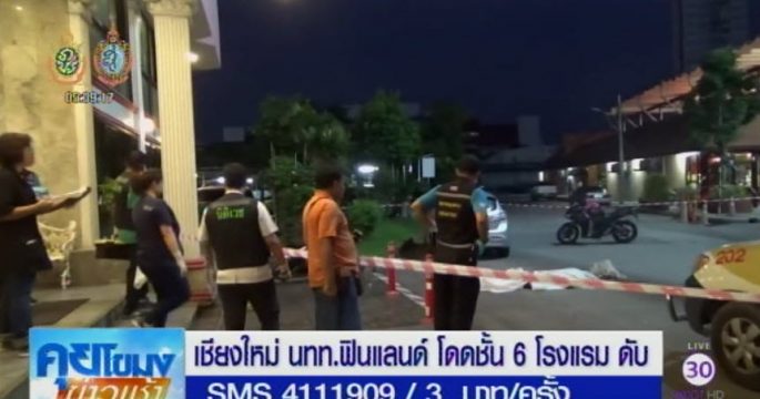 นักท่องเที่ยวฟินแลนด์กระโดดจากห้องพักชั้น 6 ของโรงแรมกลางเมืองเชียงใหม่ เสียชีวิตคาที่ เบื้องต้นคาดฆ่าตัวตาย