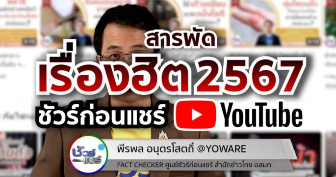 18 ธันวาคม 2567 – เข้าสู่เทศกาลส่งท้ายปี 2567 ชัวร์ก่อนแชร์ขอรวมคลิปที่สุดแห่งปี ที่มียอดผู้รับชมสูงสุดบนแพลตฟอร์ม YouTube ของเรามาฝากกันค่ะ ชัวร์ก่อนแชร์ รวบรวมคลิปยอดฮิตประจำปี 2567 ที่มียอดผู้ชมสูงสุดบน YouTube 3 อันดับ ได้แก่ 1. ติดยาดมอันตราย จริงหรือ ? ตรวจสอบกับ แพทย์แผนไทยคมสัน ทินกร ณ อยุธยา รองคณบดีวิทยาลัยแพทย์ตะวันออก มหาวิทยาลัยรังสิต บทสรุป : จริง แชร์ได้ ✅: การติดยาดมเป็นอันตรายจริง เพราะในยาดมมีสารต่าง ๆ เช่น เมนทอล และการบูร ที่ส่งผลต่อระบบทางเดินหายใจและสมอง การใช้บ่อย ๆ อาจทำให้เกิดการเสพติดและเป็นอันตรายต่อปอดได้ ควรใช้ยาดมเฉพาะเมื่อมีอาการเท่านั้น 2. กินไข่คนมะเขือเทศดิบอันตราย จริงหรือ ? บทสรุป : แชร์ได้ อธิบายเพิ่ม ⚠️ ตรวจสอบกับ […]