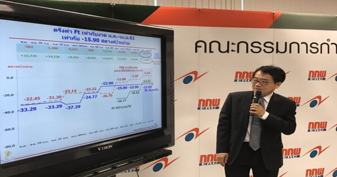 กกพ.มีมติคงค่าไฟฟ้าเอฟที งวดพฤษภาคม-สิงหาคม 2561 แม้ค่าเชื้อเพลิงเพิ่ม ส่งผลค่าไฟฟ้ารอบนี้อยู่ที่ 3.5966 บาทต่อหน่วย